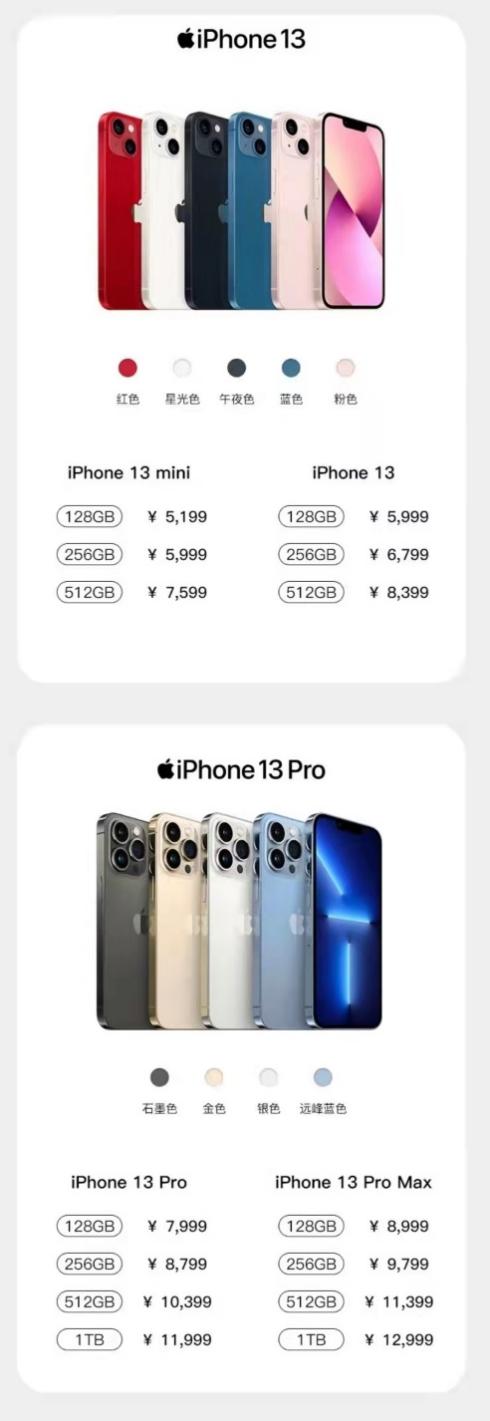 此次iPhone 13系列手机包含iPhone 13 mini、iPhone 13、iPhone 13 Pro、iPhone 13 Pro Max四款机型。产品细节上,A15仿生芯片、高刷新率、屏幕、续航成为此次新品重点升级的部分。