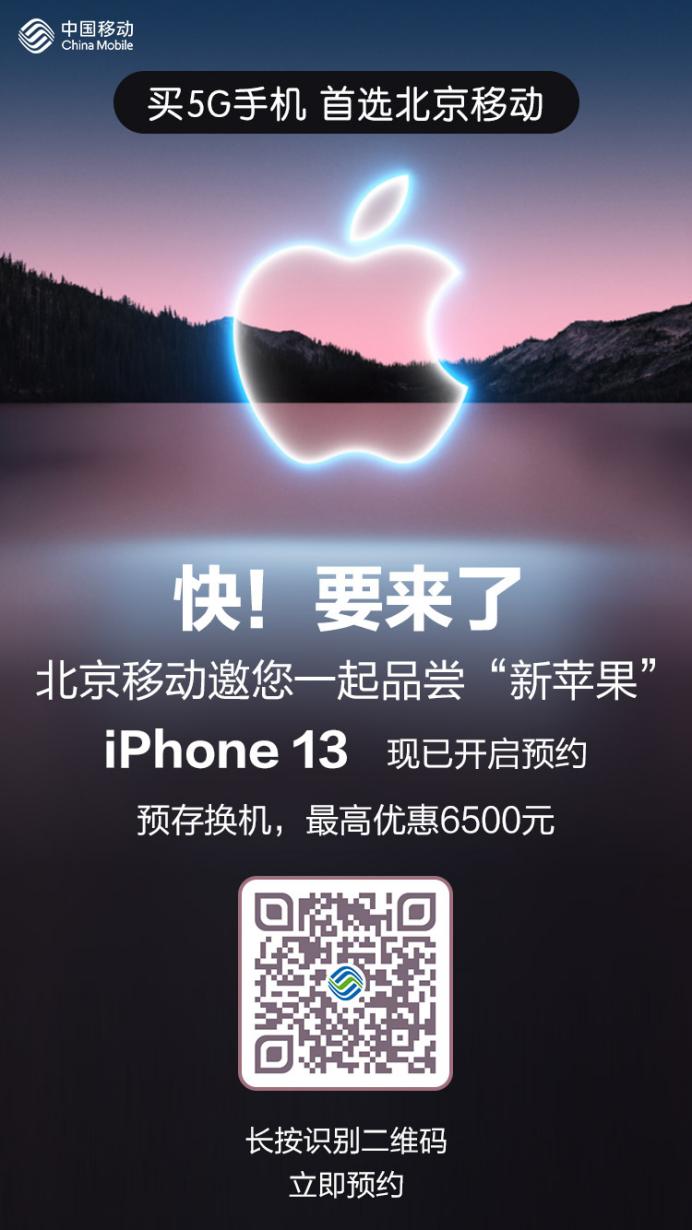 记者从北京移动获悉,为了让更多用户以超值优惠享受iPhone13系列新品,北京移动推出优惠购机活动,通过“预存话费享购机直降”的形式来给予用户福利,消费者最低可享0元购iPhone13!