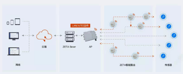 而ZETA over LoRa能较好的解决这点。一方面,对于已经采用SMT32WL芯片的存量LoRa终端来说,不需要更换已部署的传感器,只要进行ZETA协议烧写及组网,集成LoRa芯片的无线传感器等设备便可与ZETA网关、ZETA Sever网络服务器平台进行连接组网整合,LoRa传感器采集的数据可以直接上传到ZETA云平台。此外,ZETA云平台还可接入采用FSK、 M-FSK等通信技术的传感器,即通过轻量版的部署便可实现LPWAN生态的互联互通,降低落地成本及拓宽应用场景。