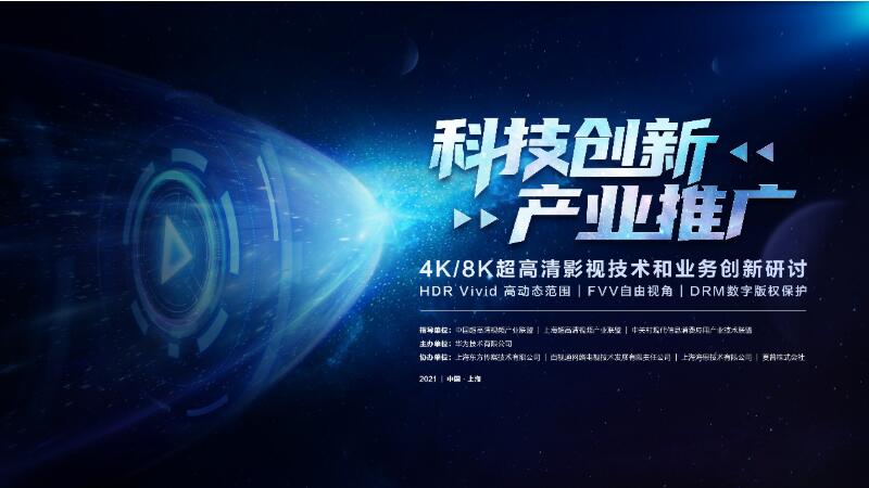 11月8日,由中国超高清视频产业联盟指导、华为技术有限公司主办的主题为“科技创新 产业推广”的4K/8K超高清影视技术和业务创新研讨在上海正式开幕。本次研讨邀请到HDR Vivid高动态范围视频标准、FVV自由视角、DRM数字版权保护以及超高清视频产业相关内容、服务、终端生态链合作伙伴汇聚一堂,围绕影视技术、业务创新、标准及产业推广展开深入交流,旨在以科技创新手段解决超高清视频产业推广问题,共谋4K/8K超高清视频产业高速发展。