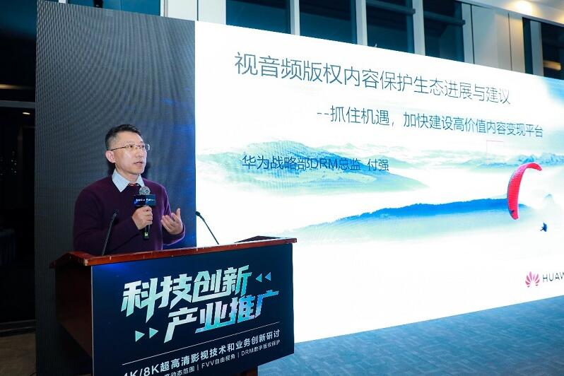 中国超高清视频产业联盟技术总监王新革、华为中国地区部大视频规划部部长王建、华为融合视频副总裁王亮、华为战略部DRM总监付强等嘉宾共同出席本次创新研讨。