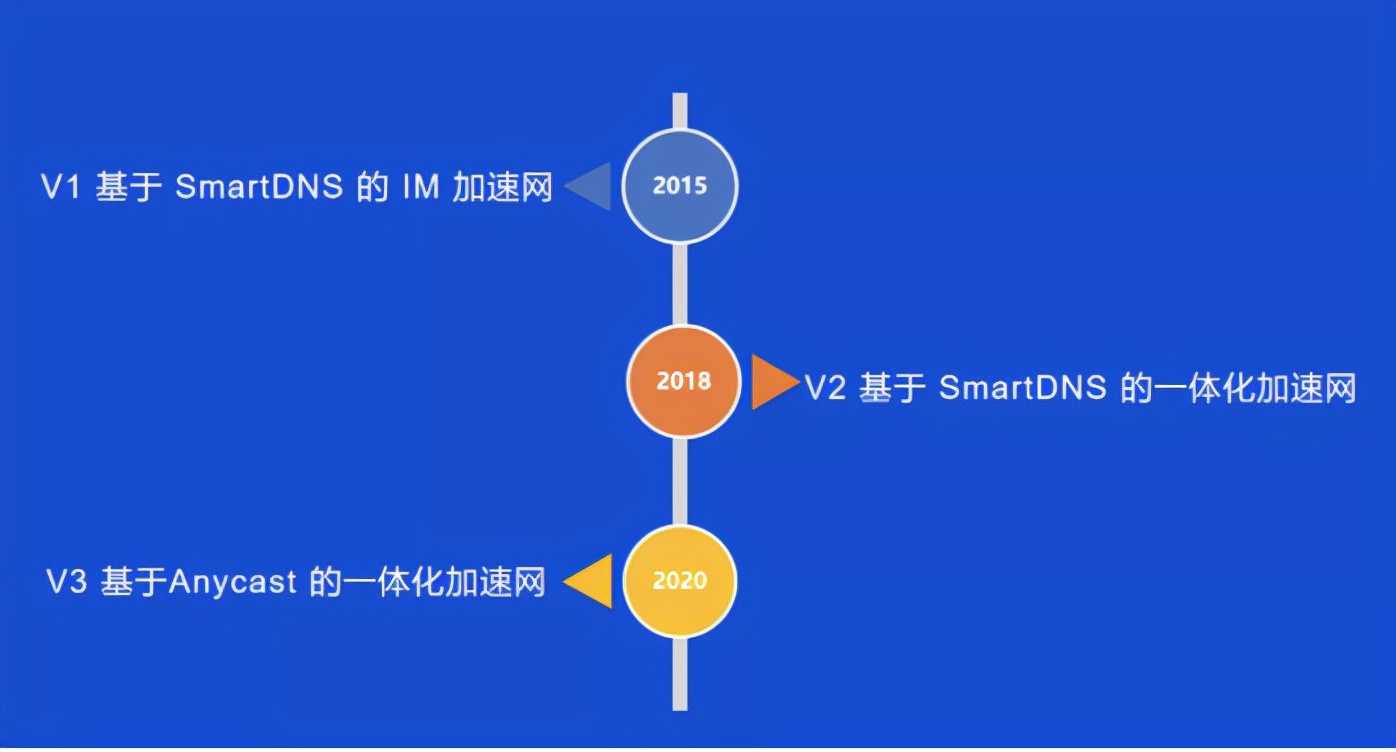优化的难点在于:如何让用户选择到质量最好的节点。通常最直观的办法是通过智能 DNS 解析,但融云经过验证发现,准确度率只在 80% 左右。为此,融云在之后增加了 IP Anycast,它跟 DNS 原理完全不同,可直接通过 IP 的方式来进行分配,这个分配是运营商级的。