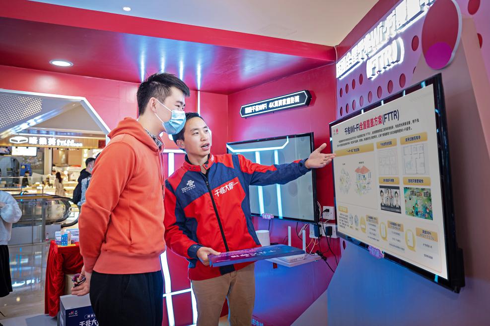 在千兆WiFi书房,分别展示着千兆网络和百兆网络下高清视频对比,让市民真切感受到千兆宽带为家庭用户带来全新上网体验。