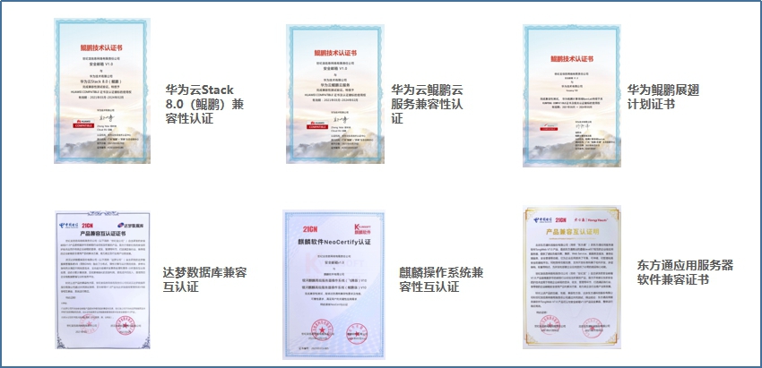 目前,安全邮箱V1.0在国产化芯片方面,已完成鲲鹏芯片、飞腾芯片的适配兼容;操作系统方面,已完成麒麟操作系统、统信操作系统的适配兼容,并且顺利通过兼容性测试验证,获得华为云鲲鹏云服务和华为云Stack 8.0的双兼容性认证;数据库及中间件方面,适配国产化达梦数据库及东方通中间件,已实现核心功能适配自主可控组件。