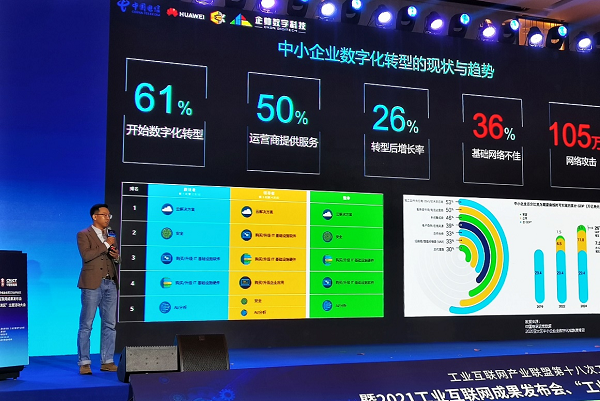 据咨询机构的相关研究数据表明,61%的中小企业已经开始着手数字化转型,其中近一半由运营商来提供服务;而转型后的效果也十分明显,企业GDP增长率平均可达26%。同时,企业也面临着不少挑战,36%的中小企业内部网络不达标。