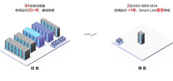 作为北京市最大的信息基础设施提供商,北京联通现网存有海量的SDH专线联接,服务政府、银行、证券、互联网等重点政企行业。然而大部分SDH设备部署年限已超过20年,设备老旧,容量小,占用了大量的光纤和机房空间,功耗相对较高。面对政企行业用户的业务带宽提速及智能化需求,SDH设备已逐步无法满足业务的发展,大量老旧SDH设备也无法满足国家“双碳”战略目标。