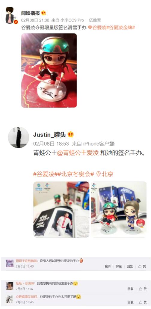 谷凌凌“超萌力手办礼盒”由梦想款+运动款组成,梦想款的设计融合了谷爱凌同款眼罩,妥妥一枚乐观又自信的天才少女;运动款的发型设计和粉色运动发带少女感十足,看起来活力满满,萌力不可抵挡!网友可通过微信搜索“咪咕商城”,进入“咪咕商城”小程序购买。此外,中国移动咪咕作为2022北京冬奥会官方转播商,也创新“场景+内容+产品”购物体验,网友们可以在咪咕视频一边看赛事、一边买奥运冠军同款,畅享双屏直播体验。