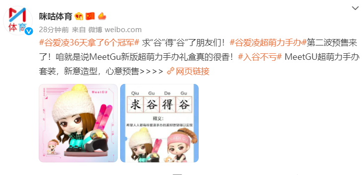 随着手办的爆火售罄,各路网友纷纷向官方“求链接”。没有抢到谷凌凌手办的网友,别着急。咪咕已经紧急调整产品线,开启补货模式,第二套谷凌凌“超萌力手办礼盒”已在咪咕商城上线,“求谷得谷”梦想成真了!