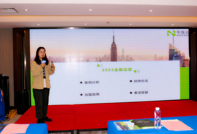 本次招商沙龙活动,牛信云营销中心渠道客户部经理 June黄贝贝,详细解读了牛信云2022年产品策略及代理商政策,为现场与会者分享了牛信云以往合伙人案例,并为大家最关心的牛信云合伙人收入做了重点分析。此外,在营销策略层面,2022年牛信云将持续推动渠道建设,帮助合伙人拓展市场,落实2022中国区合伙人政策、扶持办法、促销政策、以及奖励机制,全方位赋能合伙人,让整个营销体系深耕出海市场。