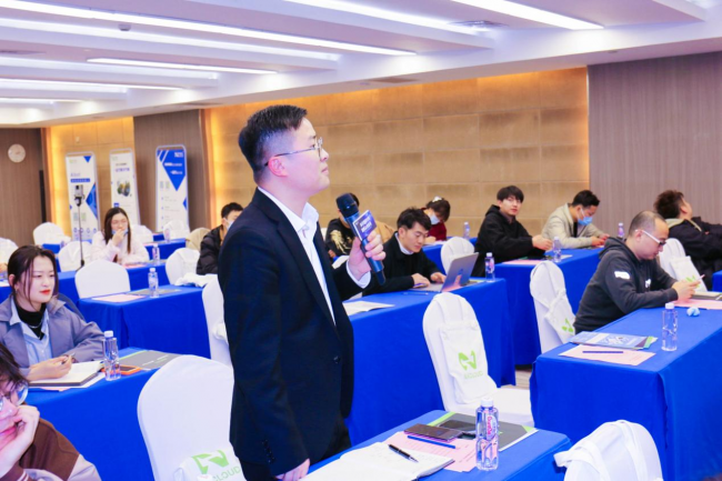 随后,由牛信云营销中心战略客户部负责人 William郑焱讲解了云通信业务如何帮助出海企业赢在“起跑线”?William郑焱向广大牛信云合伙人们讲解并展示了牛信云自主研发的全球短信、全球语音、全球号码、“小语种智能语音机器人(AI BOT)”、“跨境电商客户管理SAAS系统——声呐”等众多重磅产品。作为一家致力于为中国出海企业搭建全球通信体系的云通信公司,牛信云始终坚持“真诚、感恩、专业、坚守”的价值理念,并通过自身在出海通信行业的优势和产品创新,持续赋能每一个出海企业。
