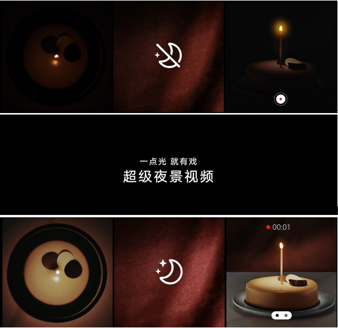 从荣耀官方视频可以看出,开启“超级夜景视频”功能,即便画面中只有蜡烛的一点微光,荣耀Magic4系列依旧可以还原周围环境,将蛋糕样式、餐桌颜色、背景光影等细节清晰呈现,极具氛围感。