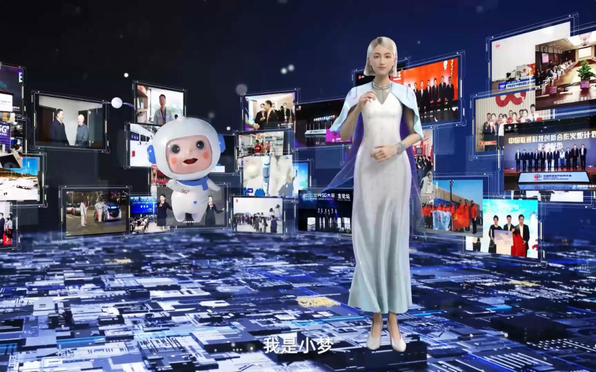 视频开头,超写实数字人安未希身穿礼服,自一片光柱中穿越而来,亲切的与观众进行互动,而调皮活泼的小梦则在科技感、未来感十足的场景中肆意遨游穿梭,为观众一一介绍联通A股公司2021年取得的业绩成果。