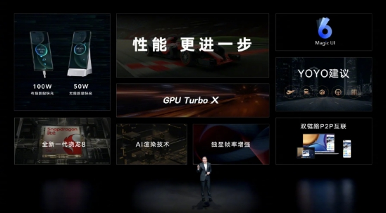 为进一步提升性能与游戏表现,荣耀Magic4系列在硬件上采用骁龙8Gen1芯片,拥有120Hz自适应刷新率、10.7亿色屏幕,搭载第三代石墨烯+VC液冷技术。为用户带来帧率更稳定、操控更灵敏、画质更出众的游戏体验。