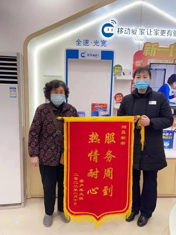 “我的健康码和行程码怎么看不到?”年过7旬的朱阿姨大年初四就到了徐州市云龙区绿地小区移动营业厅。当时接待她的移动工作人员小晁虽怀胎八月,仍立刻放下中饭,回到工位解答朱阿姨的问题。朱阿姨用得是过世老伴的号码,支付宝绑定了家人电话,小晁想方设法为她获取了本人的健康码、行程码。“我呆了一个小时,她态度特别好。我记不住的,她就再说一次,还用笔写给我。”朱阿姨为此给营业厅送了锦旗。