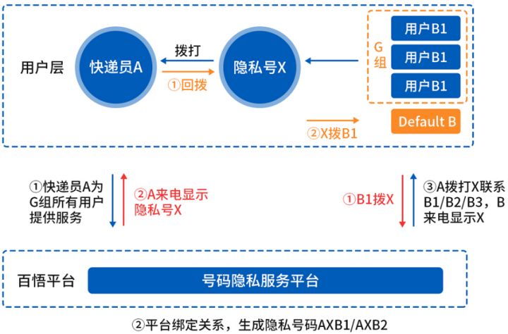 AXx分机号功能和AXB隐私号类似。如果面单量大的快递行业、外卖行业采用AXB号码,因需求量大购买号码的费用就会高。因此,百悟科技在AXB隐私号基础上引入了分机号,对每一个X号码进行了扩位,其他用户可以通过拨打X+分机号的方式,来联系到用户A。