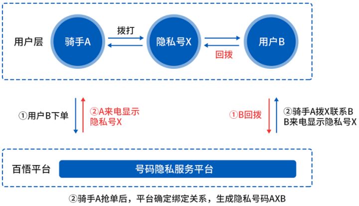 AXB中间号是为了保护一对一专属服务场景中的用户A、服务方B的隐私。这种方式的特点是号码复用性高,需要的号码资源量较低,例如网约车、快递、外卖等。
