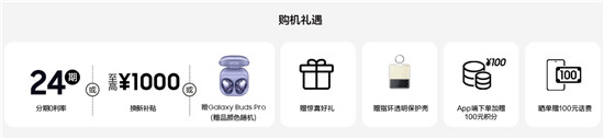 凡在三星网上商城下单Galaxy Z Flip3 5G Bespoke Edition缤色定制版的消费者,均可享受“24期分期0利率”或“至高1000元换新补贴”或“Galaxy Buds Pro蓝牙耳机”的好礼3选1礼遇,消费者可以根据自身的实际需求自由选择。此外,为了减少磕碰或掉落这些意外情况对手机造成的损伤,三星Galaxy Z Flip3 5G Bespoke Edition缤色定制版还为成功购机的消费者准备了指环透明保护壳,为手机再增添了一层安全防护。除好礼3选1、指环式透明保护壳外,购机的消费者还可享受三星网上商城APP下单加赠100元积分、晒单赠100元话费以及惊喜好礼等多重福利。