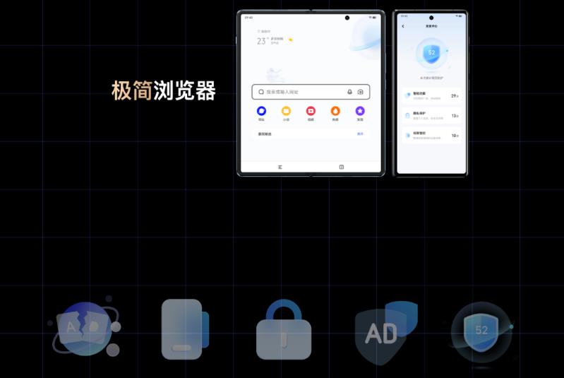 X Fold/X Note推出极简浏览器,将带给用户更纯净更安全的浏览体验。浏览器首页界面纯净简洁,减少多余信息干扰;仅提供精选资讯,方便持续关注社会动态;在个人信息保护上也带来了多重保障:遇到恶意广告和风险网址时,浏览器会智能拦截和预警,帮助你远离广告侵扰,防范网络诈骗;提供领先的防跟踪能力,可以防止第三方网站利用设备信息和三方cookie追踪、定位到用户,增强用户浏览隐私安全性。