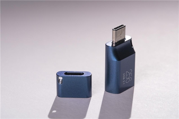 从外观上来看,三星新款Type-C闪存盘保持了与初代几乎以往的设计,精致、紧凑、小巧。这款闪存盘目前只推出了一款极光蓝配色,优盘整体仅重3.4克,甚至比一块软糖还要轻,便携性拉满。