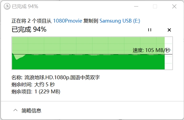 写入速度则始终可以保持在100MB/s以上,是十分优秀的闪存盘读写水准,也证明了三星Type-C闪存盘的读写性能和可靠性。