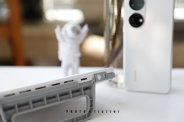 在外观上,华为移动路由Pro和前代产品变化不大,机身采用拼接撞色设计,机身比传统路由器轻薄很多,而且底座也支持拆卸,方便装到行李箱和背包里。