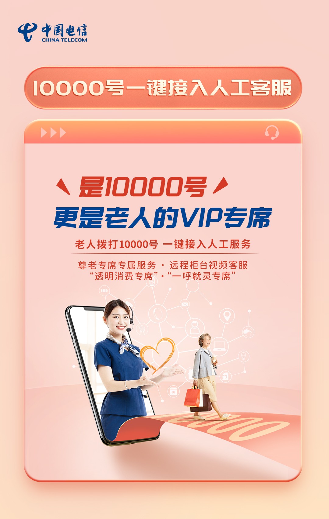 服务老龄化群体的核心,是关注老年人的需求。“线上更用心”,在中国电信,10000号与营业厅APP及网厅如今已经成为中国电信面向广大用户的主要窗口。针对65岁及以上的老年人,中国电信10000号新增自动身份识别能力,第一时间由专业坐席提供“一键呼入人工客服”的优先服务,免去了语音提示和数字选择的多重操作。