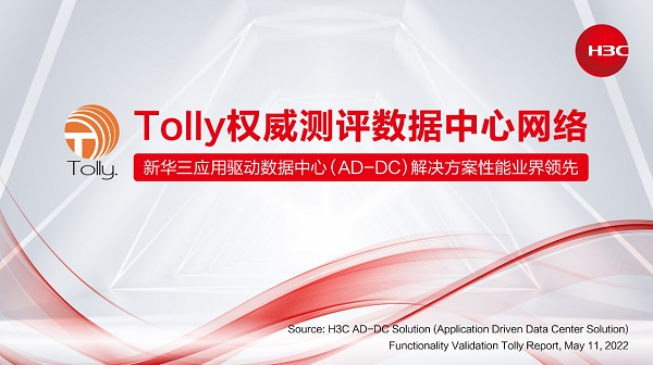 近日,国际权威评测机构Tolly Group完成了紫光股份旗下新华三集团应用驱动数据中心AD-DC解决方案的测试。根据Tolly发布的测试报告表明,新华三AD-DC解决方案在数据中心网络全生命周期自动化管理、智能分析运维、安全保护、网络架构和可用性等方面具有显著优势,为下一代数据中心建设提供了强劲驱动力。
