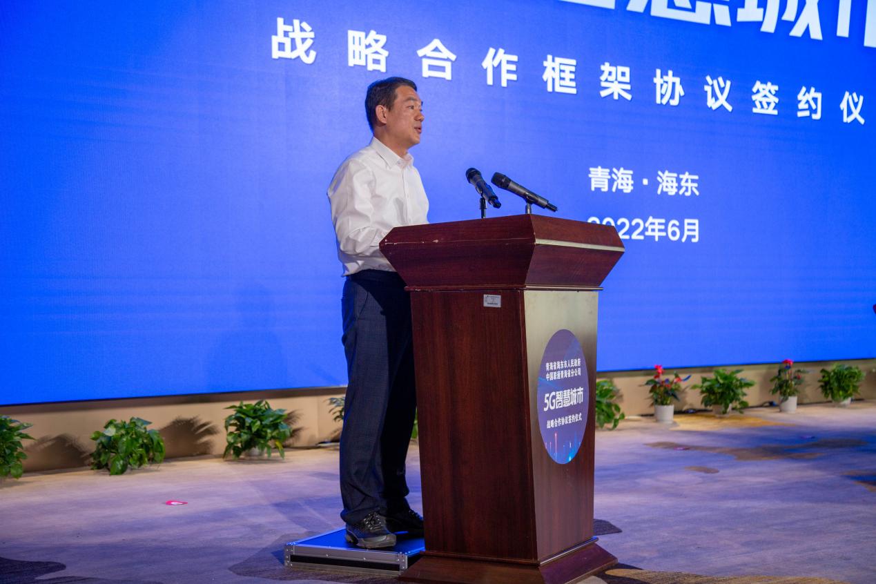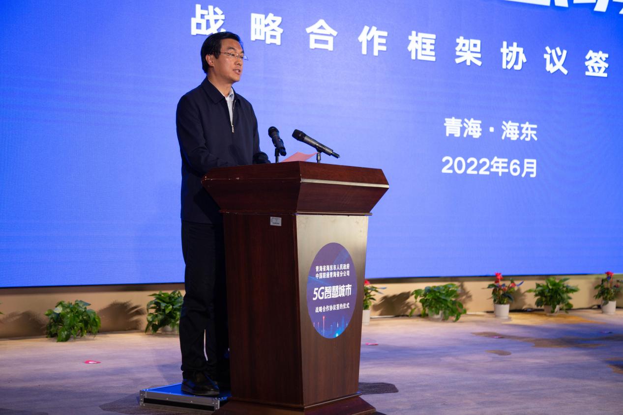 在签约仪式上,海东市委副书记、市长王华杰,青海联通党委书记、总经理朱常波分别致辞;海东市委常委、副市长袁林与青海联通党委委员、副总经理郝天新代表双方签订协议;海东市政府副市长史瑞明主持签约仪式。