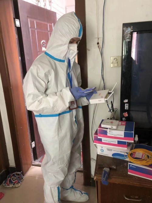 蒋永涛有一个正在读一年级的年幼孩子,身为父亲,他深知孩子上网课是头等大事!通过多方沟通、协商用户所在小区的居委、物业后,蒋永涛半小时就赶到了曹先生家中,第一时间为他安装宽带,调试好IPTV机顶盒,并认真教会曹先生使用。曹先生说:“蒋师傅竟然在这么短的时间赶来安装宽带,这样的响应速度大大超出了我的预期,真的非常快。”看着孩子高兴的笑脸,蒋永涛顿时感到动力满满,他穿着“大白”防护服,马上赶赴下一个有需求的用户家中。