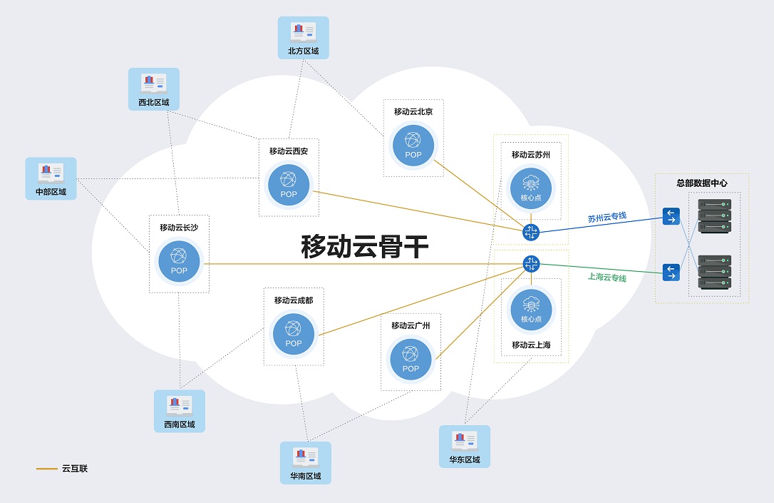 可见,依托云网一体核心优势,移动云针对总部、分支、门店分布较广的大型企业提供的云网解决方案,可助力企业快速构建高可靠、高性能、低时延的企业骨干网。