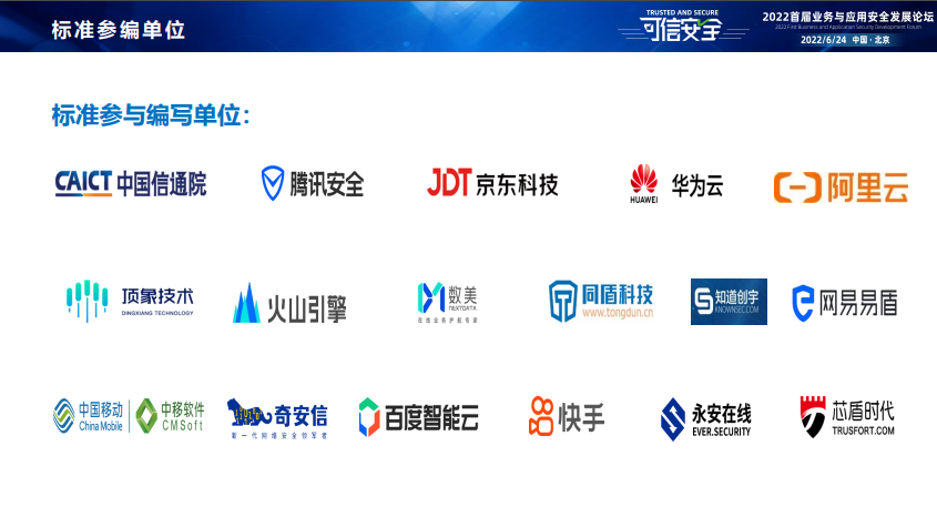 《业务安全能力要求》标准体系由中国信通院联合顶象等多家公司联合制作发布。其中,中国信通院是工业和信息化部直属科研事业单位,以“国家高端专业智库产业创新发展平台〞为发展定位,在信息通信行业重大战略、规划、政策标准和测试认证等方面发挥了有力支撑作用。云计算与大数据研究所作为中国信通院设置的核心业务单元,旨在对云计算、大数据、人工智能、区块链等新兴技术展开深入研究,推进相关标准的制定以及生态圈打造,促进ICT技术加速与工业、金融、医疗、电力等传统行业的深度融合,助力我国产业互联网和实体经济发展。