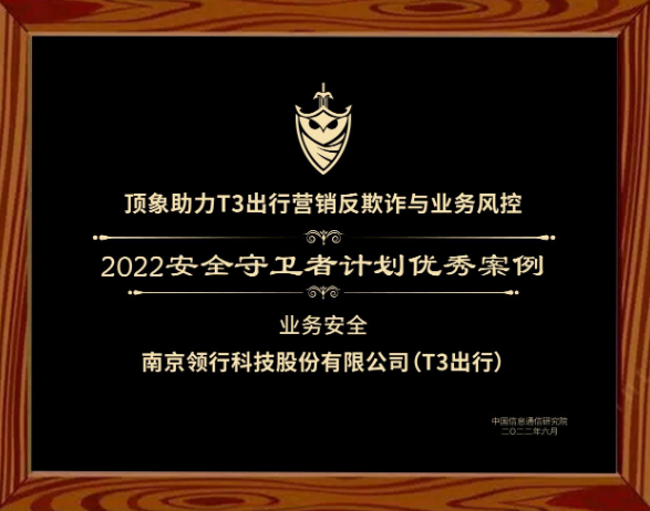 会上公布了“2022安全守卫者计划—业务/应用安全专题优秀案例评选”结果,T3出行的“出行营销反欺诈与业务风控案例”成功入选,并且是唯一上榜的出行企业。