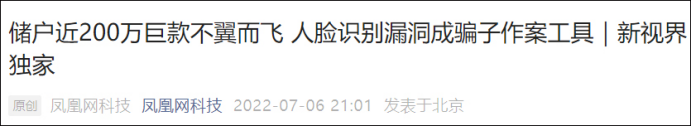 某银行储户资金被盗取不是个案,近两年来金融领域多次发生过通过人脸识别漏洞盗取钱财的案件。2020年10月,四川警方查处一个上百人的诈骗团伙。该团伙购买大量人脸视频,借助“僵尸企业”“空壳公司”,为6000多人人包装公积金信息,然后向多家银行申请公积金贷款,最终带来10亿多元的坏账。