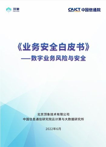 《业务安全白皮书—数字业务风险与安全》由顶象与中国信通院联合制作发布,这是国内首部专门研究数字业务安全的白皮书。