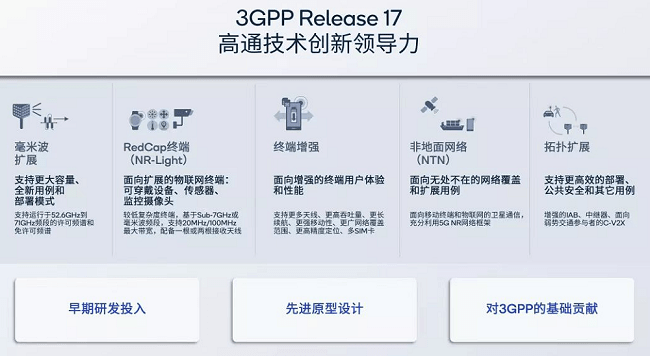 此次完成的5G Rel-17标准中,高通也贡献了诸多关键的技术发明,涉及扩展物联网(RedCap)、毫米波扩展、终端增强、非地面网络(NTN)、网络拓扑扩展等技术领域。例如,Rel-17引入了RedCap新技术,5G NR宽带设计可简化至5G NR-Light,其中,Sub-7GHz频段的带宽可缩减为20MHz,毫米波频段的带宽缩小到100MHz,而且5G物联网终端的接收天线也能从四根减少到一到两根,还支持更低的发射功率、增强的节能模式等节能技术。所有这些,意味着海量造价便宜、低复杂度的终端,例如手环、工业传感器等等,都能够以高效、节能的方式接入网络,实现万物互联的5G愿景。