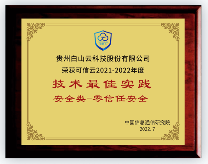 7月21日,由中国信息通信研究院、中国通信标准化协会主办的2022可信云大会召开,备受瞩目的可信云各项评估认证及年度最佳实践案例评选结果正式揭晓。经过层层审核,白山云同时通过五项可信云权威评估认证,包括SASE成熟度能力评估、零信任安全能力、SD-WAN解决方案评估、CDN服务企业综合信用水平AAA级、公有云IaaS/PaaS服务评估。更值得一提的是,白山云零信任产品凭借多项技术创新优势脱颖而出,获评“可信云2021-2022年度技术最佳实践”奖。