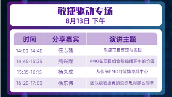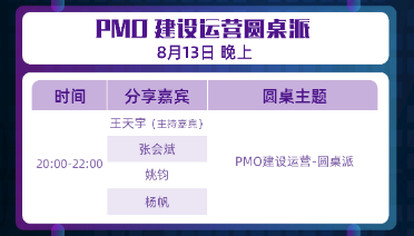 8月13-14日,PMO前沿大会云端直播,我们诚挚邀请您一起参与交流学习,共享国内优秀PMO前沿实践者的知识盛宴。