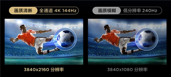在高刷方面,目前电视行业存在四种高刷,分别是软件120Hz高刷、软件240Hz高刷、硬件120Hz高刷和硬件144Hz高刷,“软高刷”通常以牺牲清晰度为代价来保证参数达到一定级别,所以并不是真正的高刷。而“硬高刷”则是通过全线升级硬件配置来达到真正意义上的高刷。HX U7H实现了240Hz软高刷,看起来数据优秀,其实是“软高刷”,TCL T7G支持全通道4K 144Hz真高刷,就是真正从传输接口、解码芯片、物理屏幕、算法都实现了4K 144Hz的解决方案。看球赛、看电影、玩游戏都能保持流畅清晰细腻丝滑。