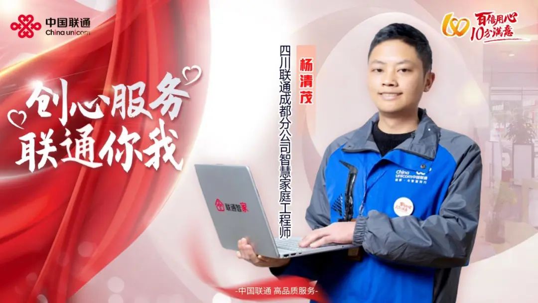 成都联通杨清茂是一名优秀的智慧家庭工程师,今年是他进入通信行业的第12个年头。12年来,他始终保持着严谨细致的思想作风、认真负责的工作态度,用心记下用户的各种需求,耐心解答,完美交付。
