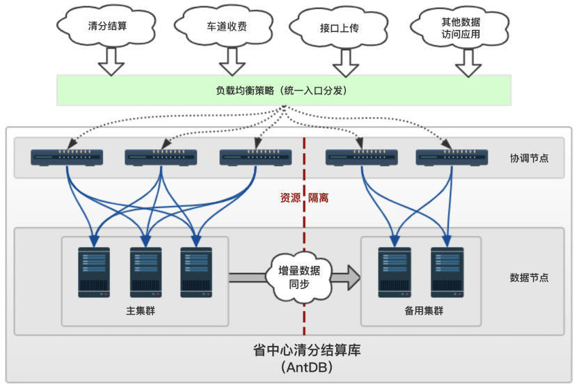 同时,在AntDB中统一进行存储于处理的各类数据,可通过同步机制增量提供给副本集群(只读访问),实现数据的集中统一、资源隔离。通过一套数据库满足清分结算、车道收费、接口上传业务开发支撑能力。统一数据入口,各系统采集的数据由清分结算统一处理存放到数据库中,实现统一接入。