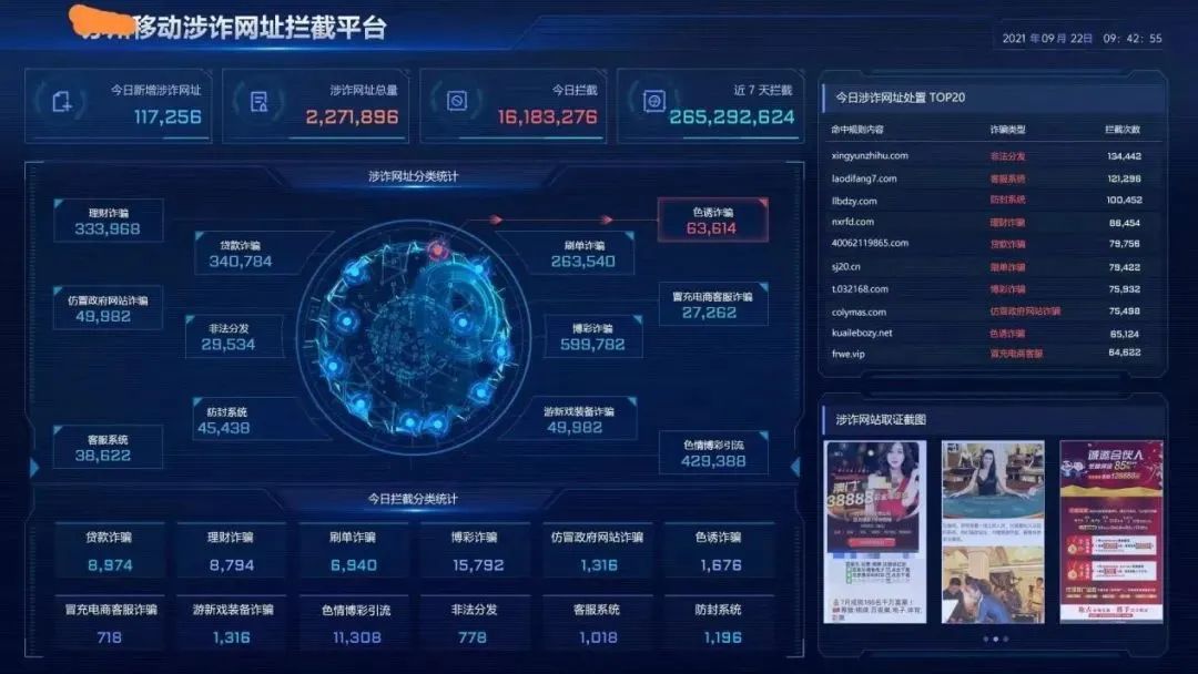 2021年初,江苏移动上线了精准阻断防控系统。该系统基于大数据、AI模型等技术,能够识别出冒充公检法、网贷诈骗、刷单返利、博彩诈骗、虚假征信等欺诈类型网址,同步预警、封堵欺诈网站,并以页面告警的方式提醒用户,有效预防欺诈案件发生。