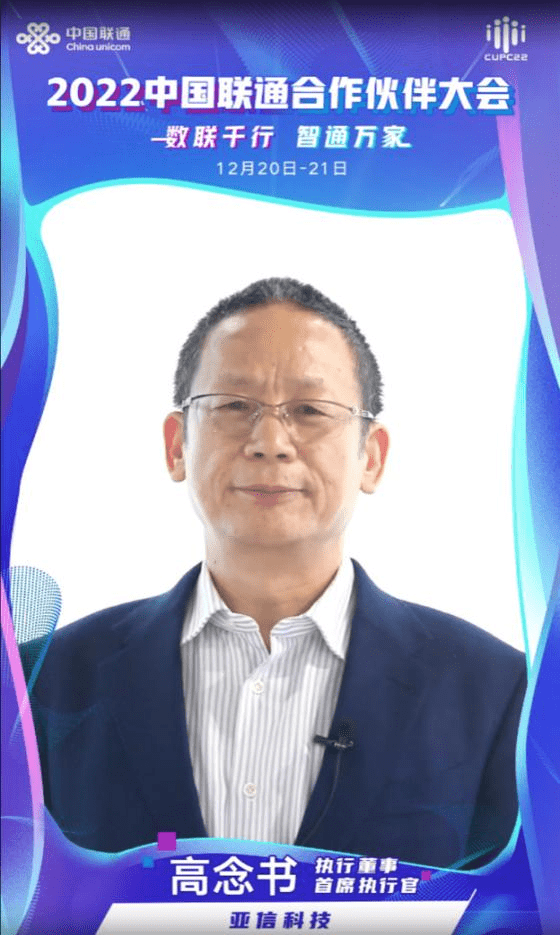 12月20日-21日,2022中国联通合作伙伴大会在线上拉开帷幕。本次大会以“数联千行、智通万家”为主题,旨在凝聚合作伙伴合力,共赴中国式现代化新征程。亚信科技执行董事、CEO高念书,CTO、高级副总裁欧阳晔,副总裁安晓明应邀出席云上大会。