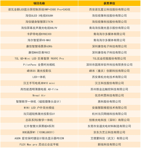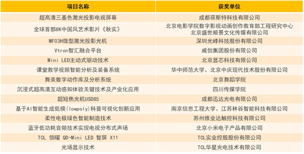 “科技创新奖”旨在表彰我国音视频领域内表现突出的企业创新产品、技术、应用和设计,从而提升我国音视频行业的自主创新能力和核心竞争力。中国电子视像行业协会副秘书长董敏颁布了获得2022年度“科技创新奖”的企业名单: