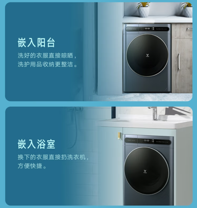 市面上很多洗衣机都会主打“超薄”卖点,但不是所有的超薄型洗衣机都“超薄”!能不能做到在家中任何空间都能放下,就要考验硬实力了。云米互联网洗烘一体机纤薄版突破470mm超博机身,比普通滚筒洗衣机机身厚度减少约100mm,比普通超薄型洗衣机更薄40mm,节省空间会让它的摆放有更多种选择,外加优雅云墨蓝外观设计,搭配高雅的金属镀铬门圈装饰圈,妥妥家居艺术品,自由嵌入空间,创造更多布局可能性。