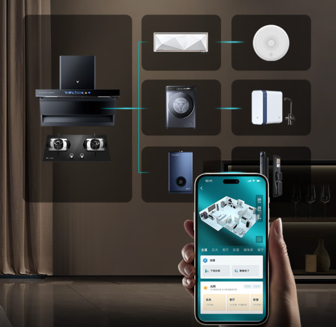 在这样整体智能化的家居中,每一个设备都能相连相通,而非传统的一个个设备孤岛,了解之后才知道,原来他家用的都是云米科技的产品,而且不用自己多花心思,60+品类覆盖全屋,轻轻松松就能一站式购齐。我根据自身需求,打算先从厨房开始改造,果断入手了油烟机、洗碗机和净水器这三款产品。