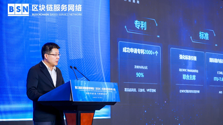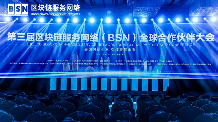 2023年2月17日,国家信息中心与杭州市人民政府、中国移动等单位联合举办的第三届区块链服务网络(BSN)全球合作伙伴大会在杭州举行。大会以“做强可信生态,引领智慧未来”为主题,邀请到海内外知名学者、权威专家、头部企业大咖等重量级嘉宾,共同为区块链技术和数字经济创新发展建言献策、谋划未来。国家信息中心主任刘宇南,信息化和产业发展部主任、区块链服务网络(BSN)发展联盟理事长单志广,中国移动等企业及媒体代表等参与此次大会。