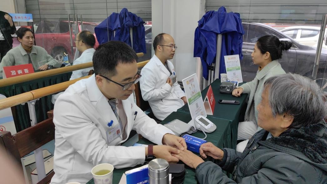 讲座结束后,专家们在现场为有需要的社区居民进行免费健康咨询。过程中,医护人员为社区居民量血压、测血糖,专家们详细询问居民的既往病史和用药情况,针对老年人常见病、慢性病进行答疑解惑,给出相应的健康改善方案,并为老年人普及医学常识和日常护理知识。