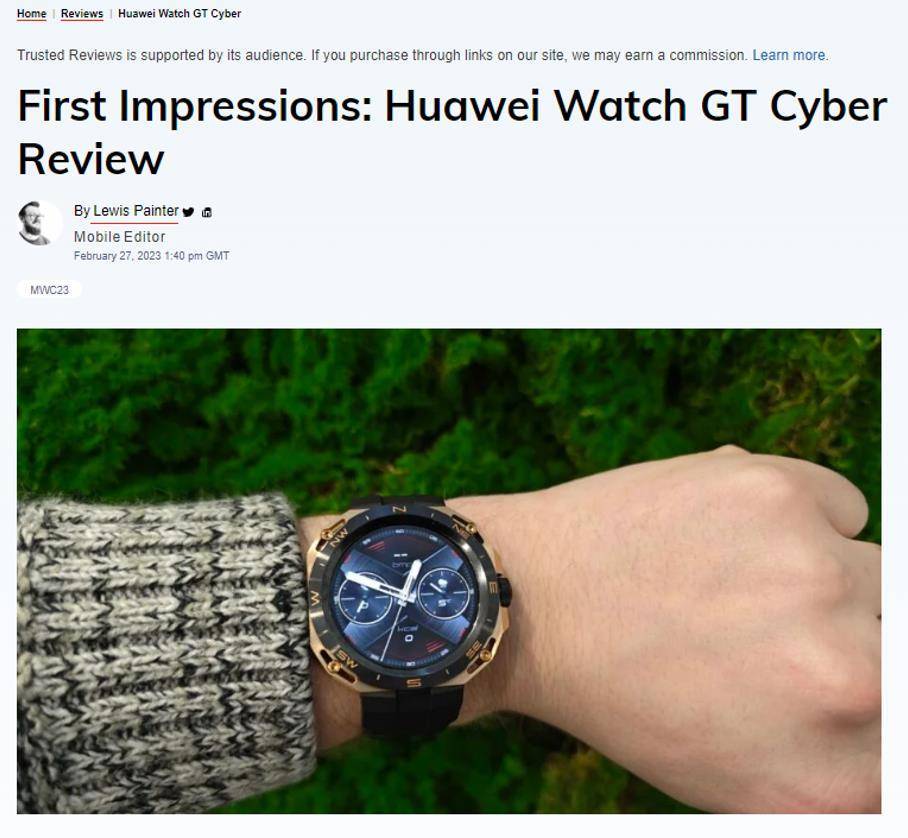 英国知名科技网站Trusted Reviews授予其“MWC 2023最佳展示”奖,并评价道:“很多智能手表可以更换表带,但HUAWEI WATCH GT Cyber可以更换整个外壳,它做到了真正的个性化。”
