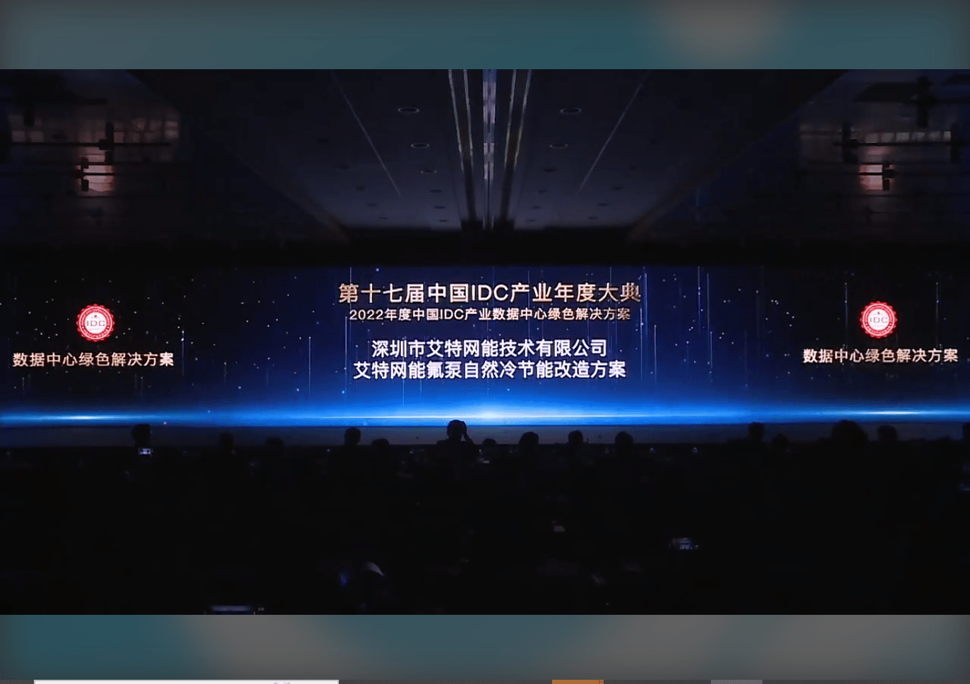 在2022年度中国IDC产业评选颁奖典礼上,艾特网能氟泵自然冷节能改造方案荣获绿色解决方案奖项。该奖项旨在表彰行业内推动绿色发展,节能减排,为客户提供优质绿色算力服务的数据中心项目。