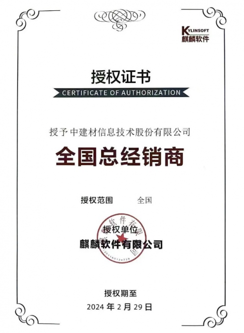 近日,中建材信息技术股份有限公司(简称:中建信息)成为麒麟软件有限公司(简称:麒麟软件)全国总经销商,开启了合作新篇章,双方将充分发挥各自领域优势,在资源共享、生态共建等方面协同发展,携手推进国产科技走深、走实,助力国产化生态圈建设。